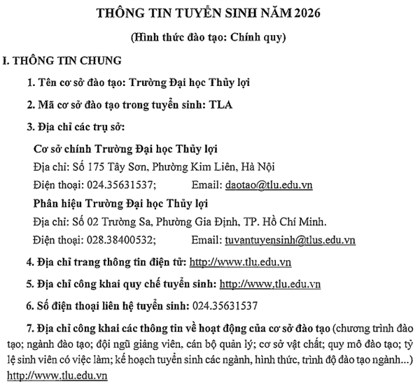 THÔNG TIN TUYỂN SINH ĐẠI HỌC CHÍNH QUY NĂM 2026