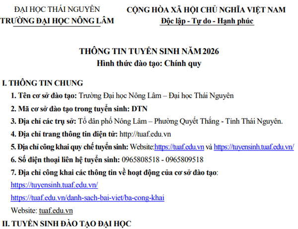 THÔNG TIN TUYỂN SINH ĐẠI HỌC CHÍNH QUY NĂM 2026