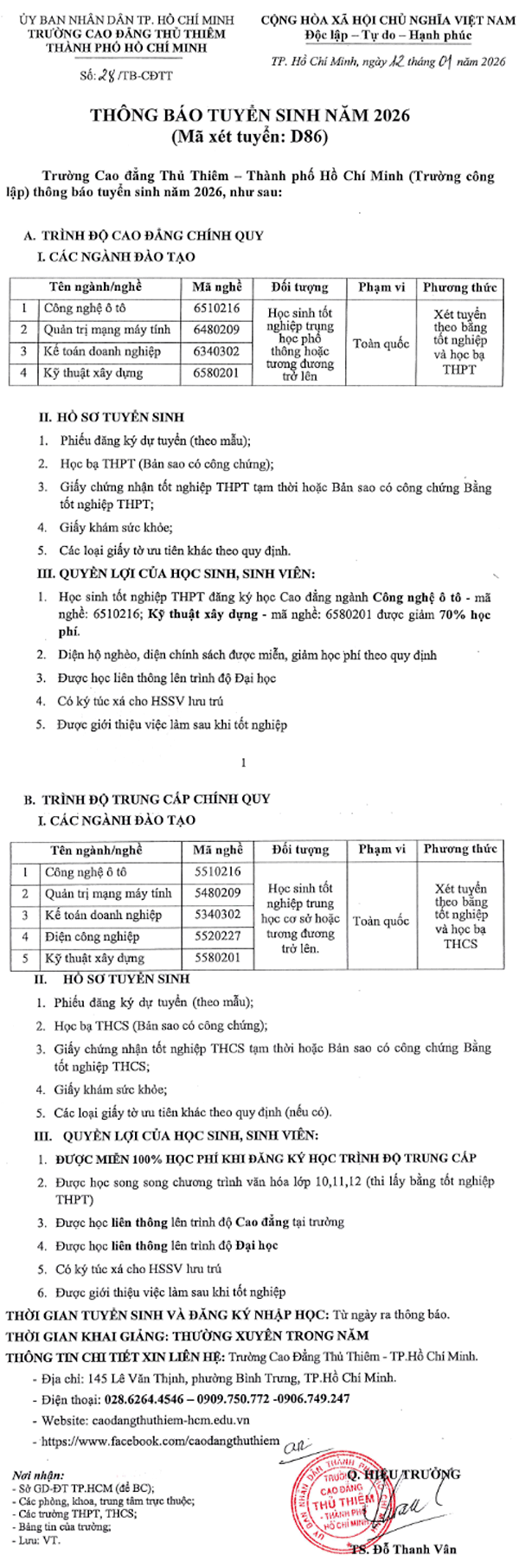 Trường Cao đẳng Thủ Thiêm Tp. Hồ Chí Minh