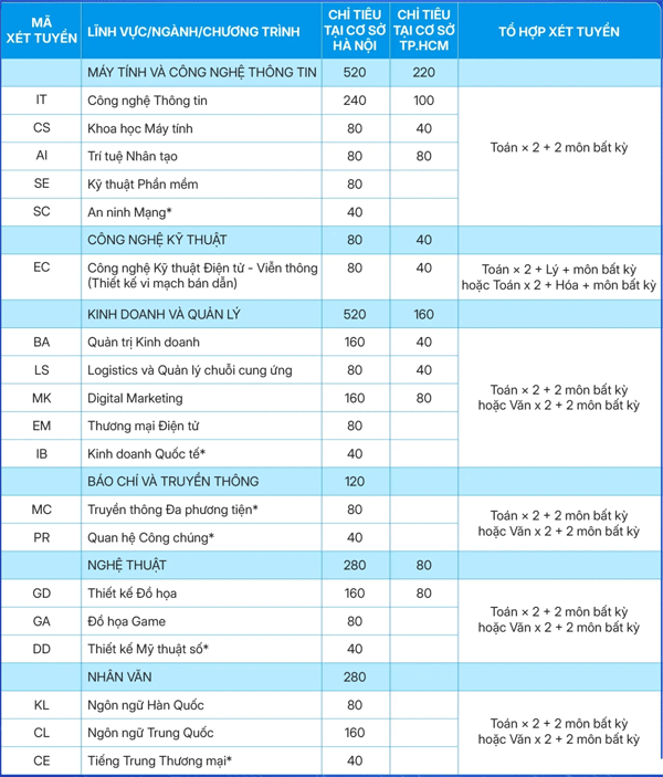+ Các ngành khác: thí sinh thuộc tất cả các khối chuyên.