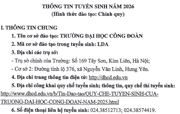 THÔNG TIN TUYỂN SINH ĐẠI HỌC CHÍNH QUY NĂM 2026