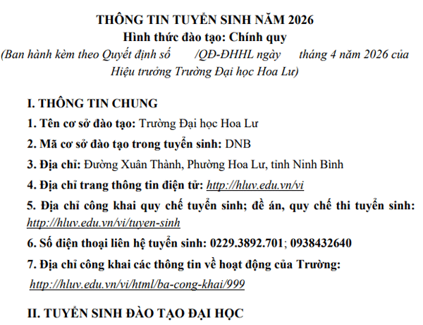 THÔNG TIN TUYỂN SINH NĂM 2026 - Hình thức đào tạo: Chính quy