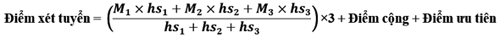 Điểm xét tuyển = M1 + M2 + M3 + Điểm cộng + Điểm ưu tiên