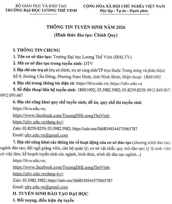 THÔNG TIN TUYỂN SINH ĐẠI HỌC CHÍNH QUY NĂM 2026 *******
