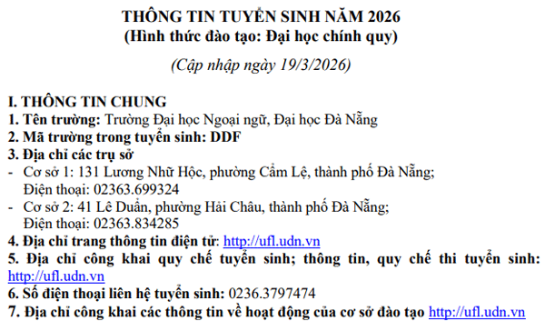 THÔNG TIN TUYỂN SINH ĐẠI HỌC CHÍNH QUY NĂM 2026