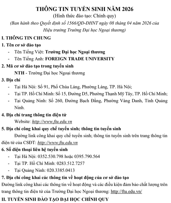 THÔNG TIN TUYỂN SINH ĐẠI HỌC CHÍNH QUY NĂM 2026