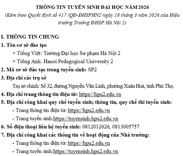 >>THÔNG TIN TUYỂN SINH ĐẠI HỌC NĂM 2026