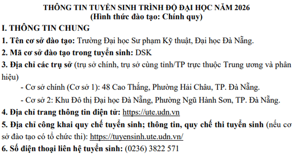 THÔNG TIN TUYỂN SINH ĐẠI HỌC CHÍNH QUY NĂM 2026 *********