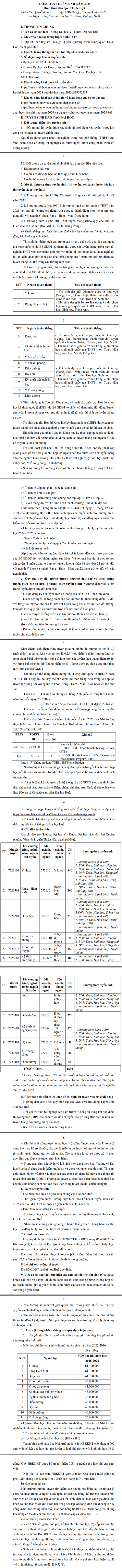 THÔNG TIN TUYỂN SINH ĐẠI HỌC CHÍNH QUY NĂM 2025 *******