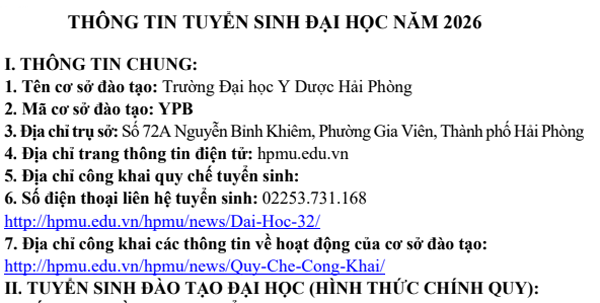 THÔNG TIN TUYỂN SINH ĐẠI HỌC NĂM 2026