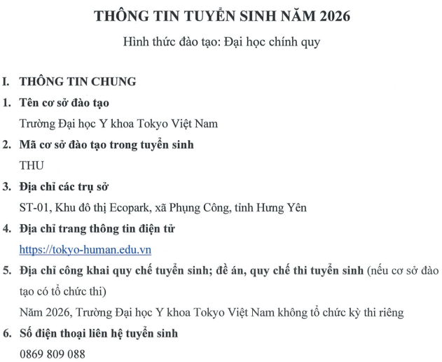 THÔNG TIN TUYỂN SINH NĂM 2026