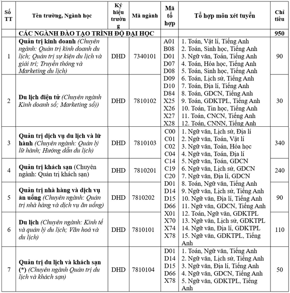 (*): Ngành Quản trị du lịch và khách sạn sẽ được giảng dạy bằng tiếng Anh