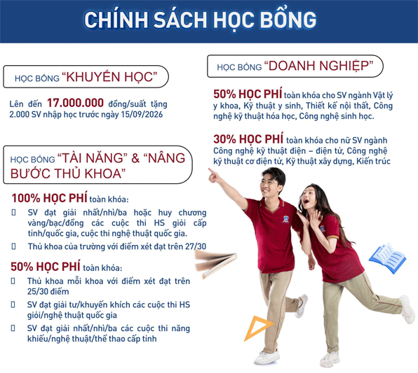 - Thí sinh có chứng chỉ IELTS từ 4.5/9.0 hoặc TOEIC (L&R) 550/990 hoặc TOEIC (Bridge) 76/100 hoặc TOEFL iBT từ 30/120 hoặc TOEFL ITP từ 450/677 hoặc Cambridge từ 140/230 được ưu tiên xét tuyển vào các ngành có môn Tiếng Anh với mức điểm thay thế tương đương điểm 8 theo thang điểm 10.