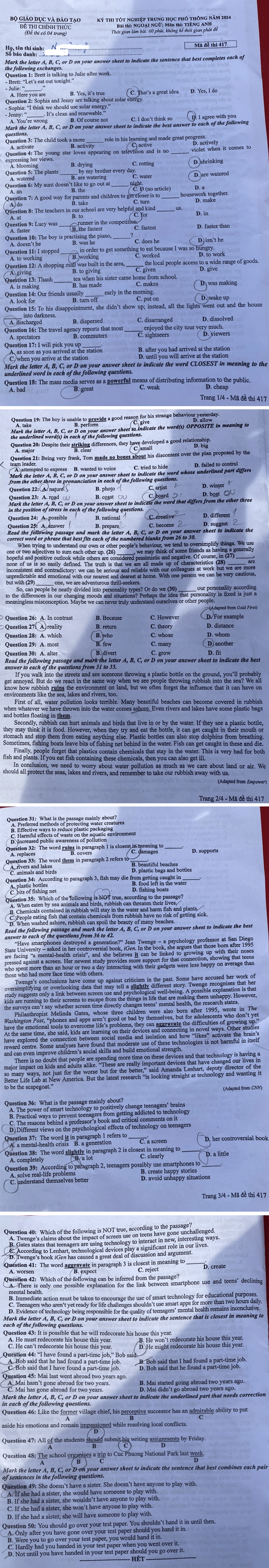 Đề thi môn TIẾNG ANH kỳ thi tốt nghiệp THPT 2024