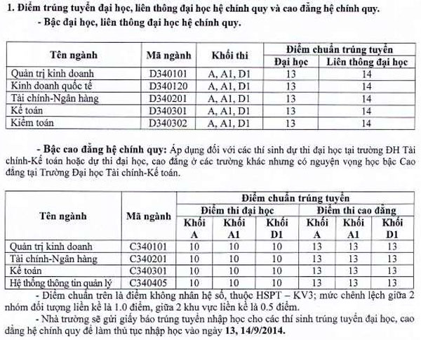 Điểm chuẩn 2014: Trường ĐH Tài chính - Kế toán