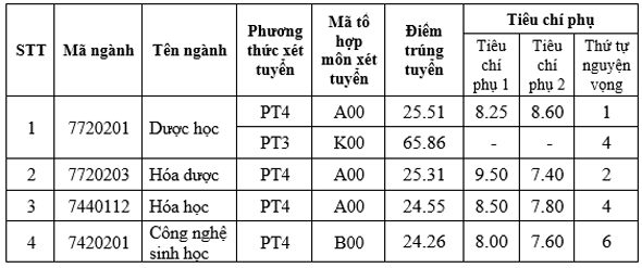 Trường Đại học Dược Hà Nội thông báo điểm trúng tuyển đại học chính quy đợt 1 năm 2024 - theo phương thức 3 và phương thức 4