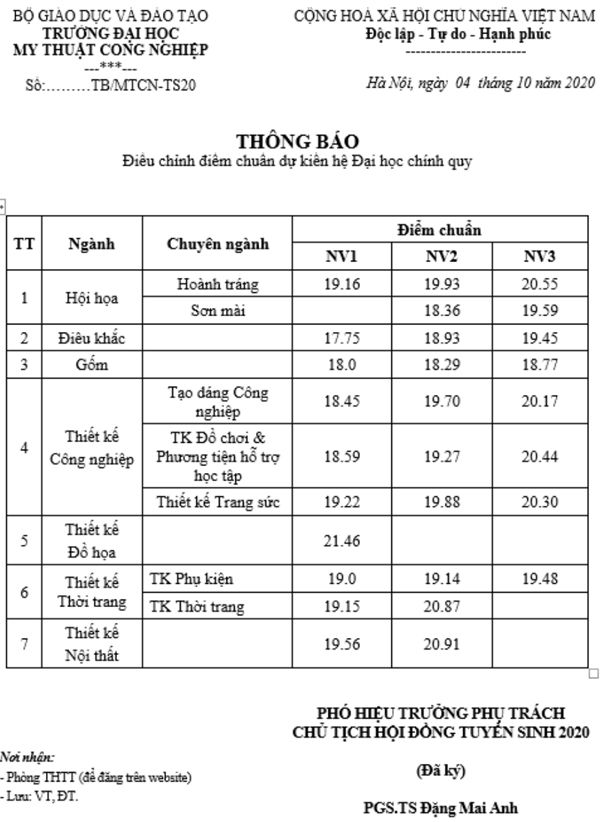 Điểm chuẩn năm 2020 của Trường Đại học Mỹ thuật công nghiệp
