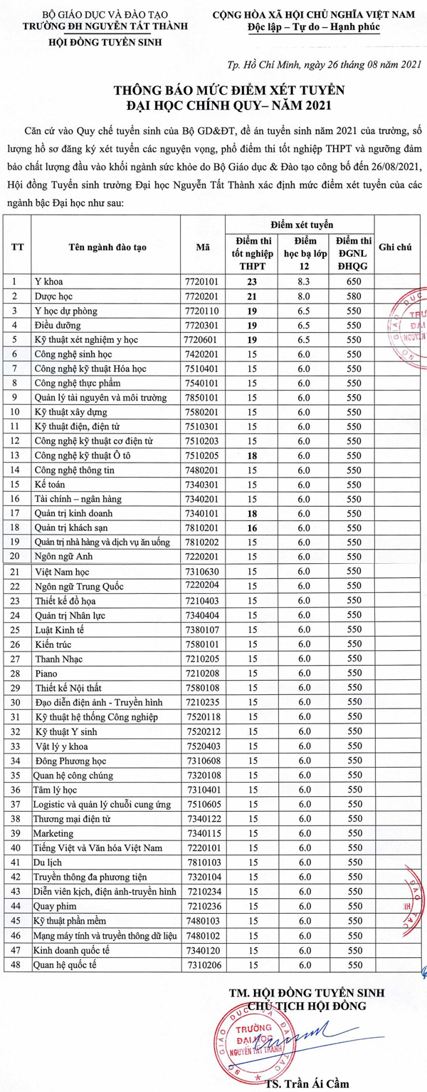 Điểm nhận hồ sơ ĐKXT năm 2021 của Trường Đại học Nguyễn Tất Thành