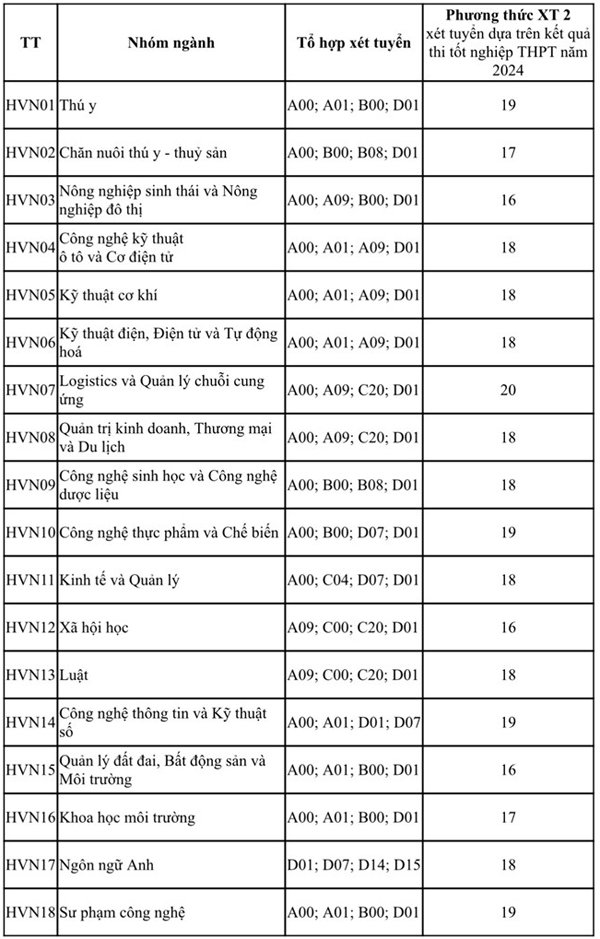 Điểm sàn ĐKXT năm 2024 theo điểm thi tốt nghiệp THPT của Học viện Nông nghiệp VN