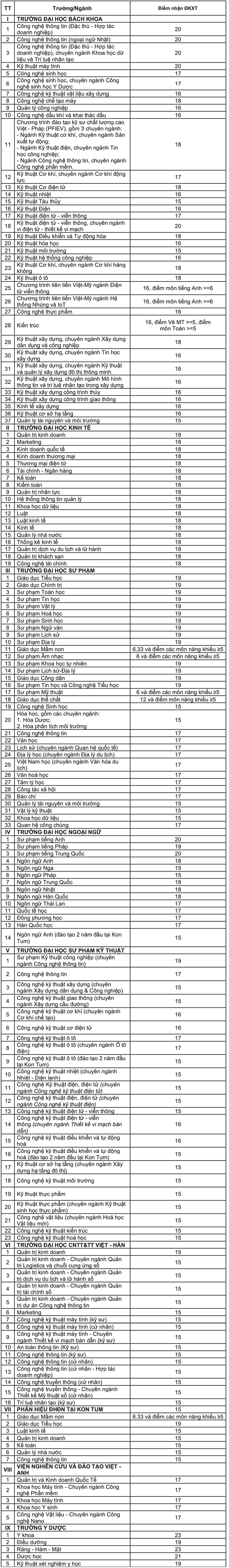 Điểm sàn ĐKXT năm 2024 theo xét điểm thi tốt nghiệp THPT của ĐẠI HỌC ĐÀ NẴNG