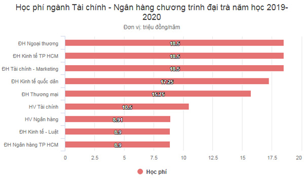 Đại học Ngoại thương, Kinh tế TP HCM và Tài chính - Marketing cùng có học phí là 18,5 triệu đồng cho năm học 2019-2020.