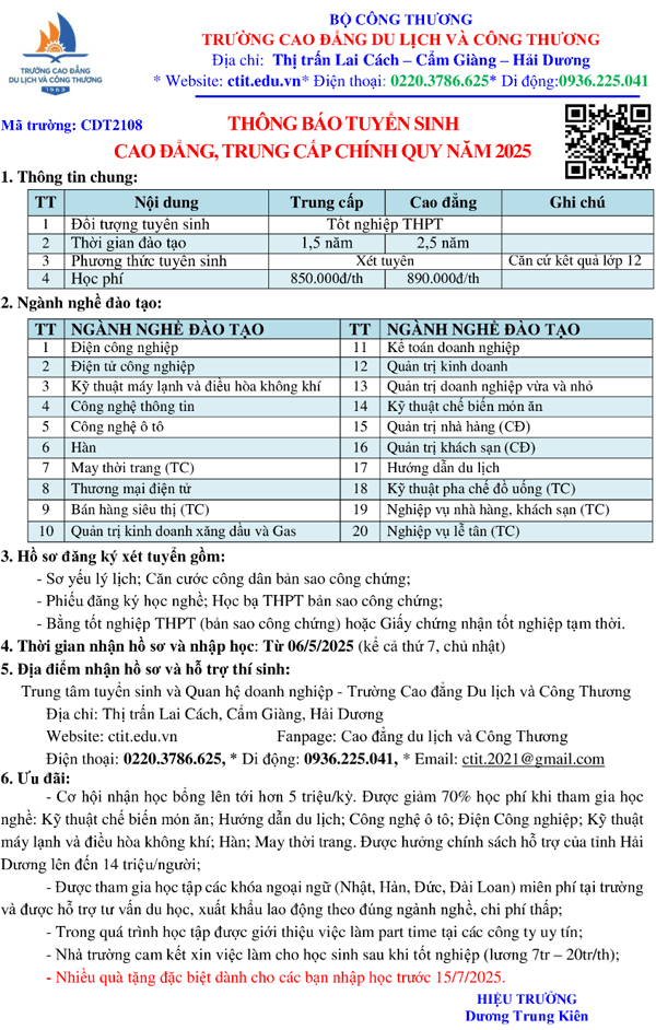 Trường Cao đẳng Du lịch và Công thương