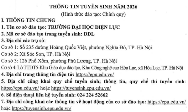 THÔNG TIN TUYỂN SINH ĐẠI HỌC CHÍNH QUY NĂM 2026