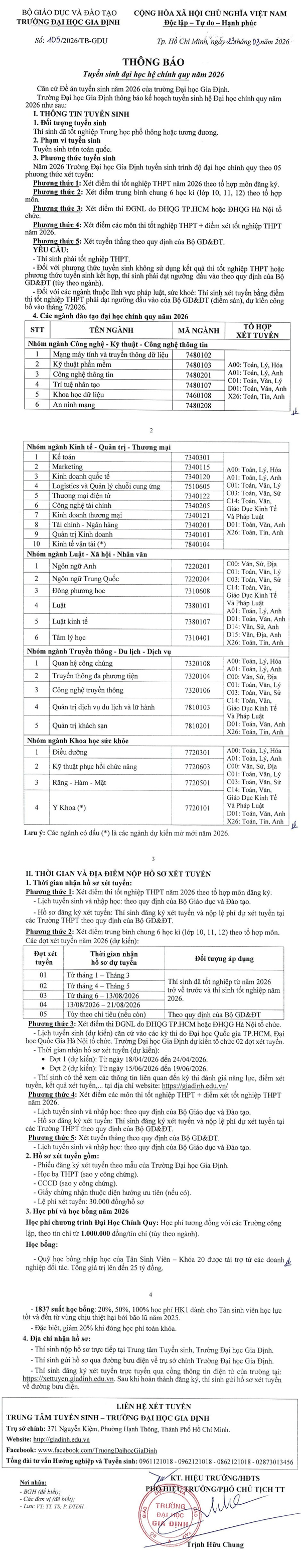 THÔNG TIN TUYỂN SINH ĐẠI HỌC CHÍNH QUY NĂM 2026