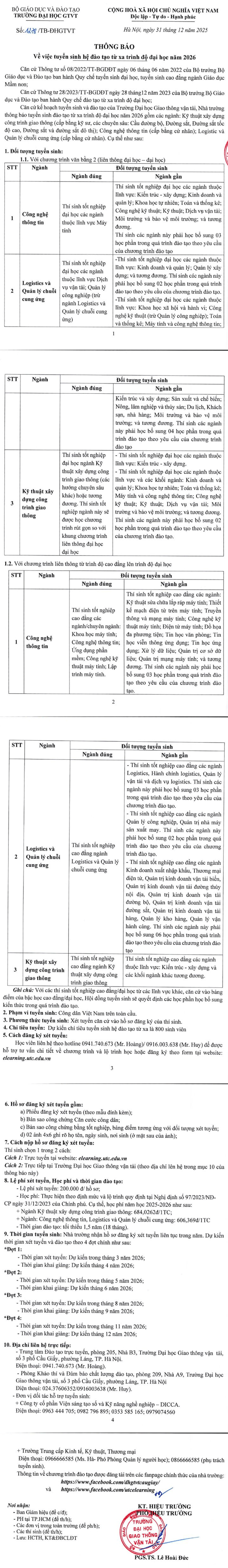 Trường Đại học Giao thông vận tải tuyển sinh đại học từ xa năm 2026