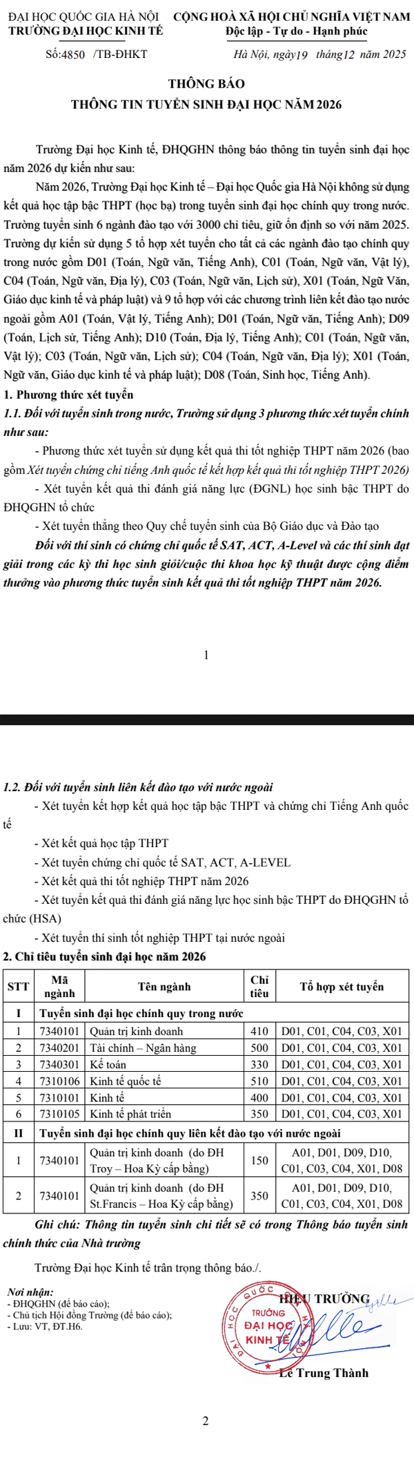 THÔNG TIN TUYỂN SINH ĐẠI HỌC CHÍNH QUY NĂM 2026