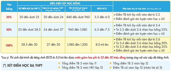 Đa dạng học bổng, giá trị lên đến 100% học phí