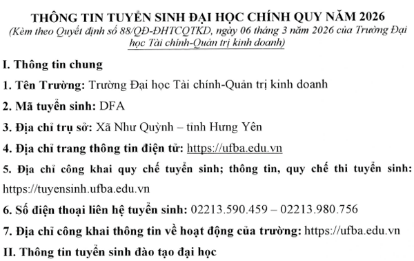 THÔNG TIN TUYỂN SINH ĐẠI HỌC CHÍNH QUY NĂM 2026
