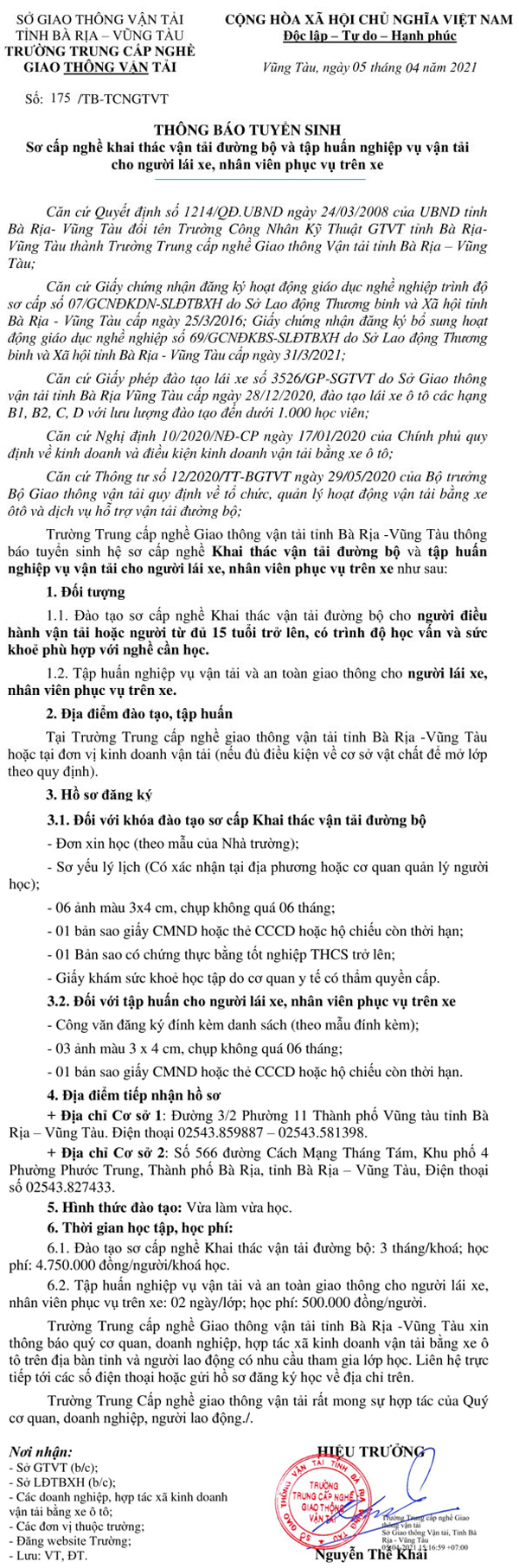 TRƯỜNG TRUNG CẤP NGHỀ GIAO THÔNG VẬN TẢI TỈNH BÀ RỊA – VŨNG TÀU